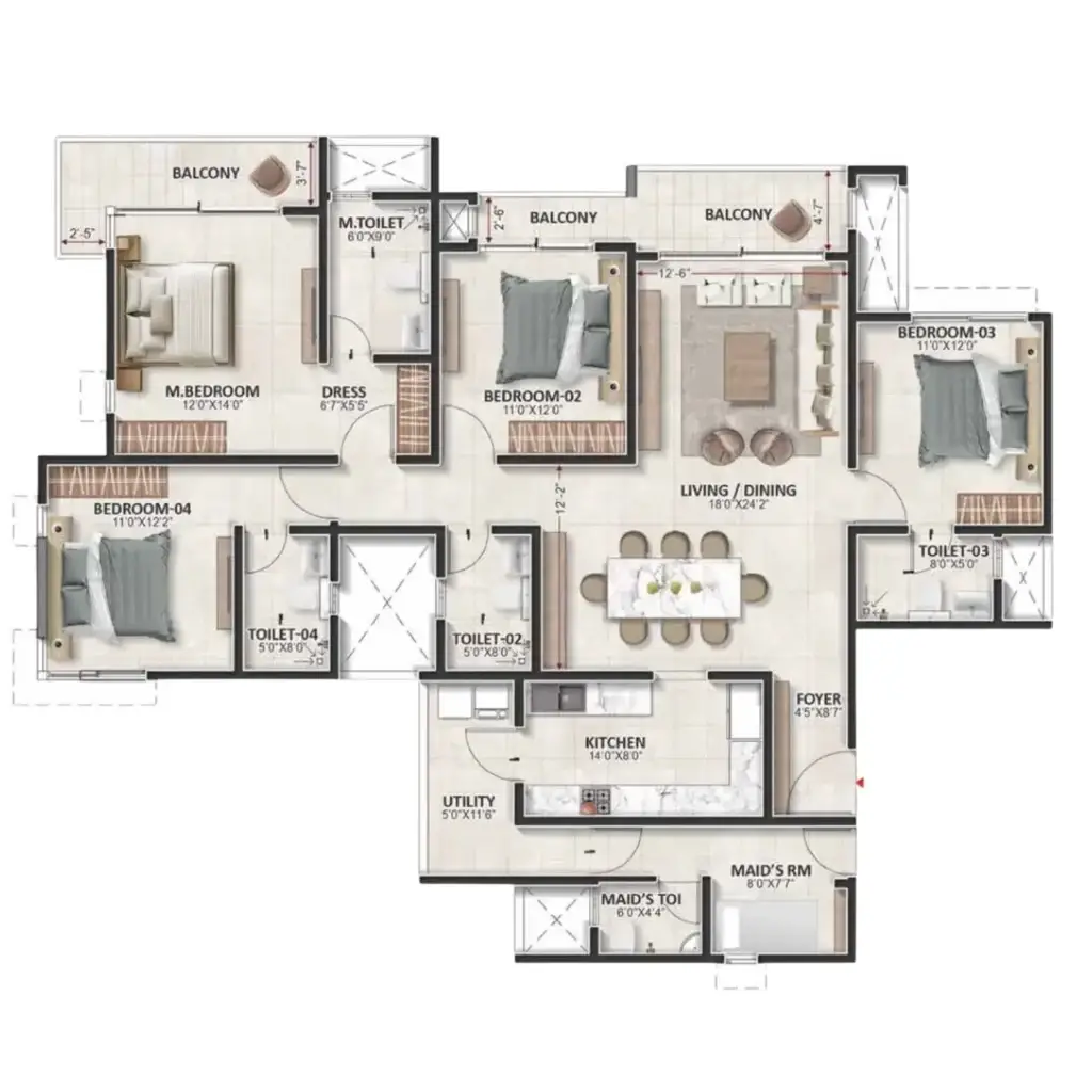 Experience the grandeur of a 21-acre township designed for 80% open space. Request the specific tower-wise floor plans from our Authorized Channel Partner desk.