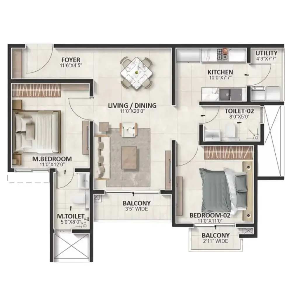 Experience the grandeur of a 21-acre township designed for 80% open space. Request the specific tower-wise floor plans from our Authorized Channel Partner desk.